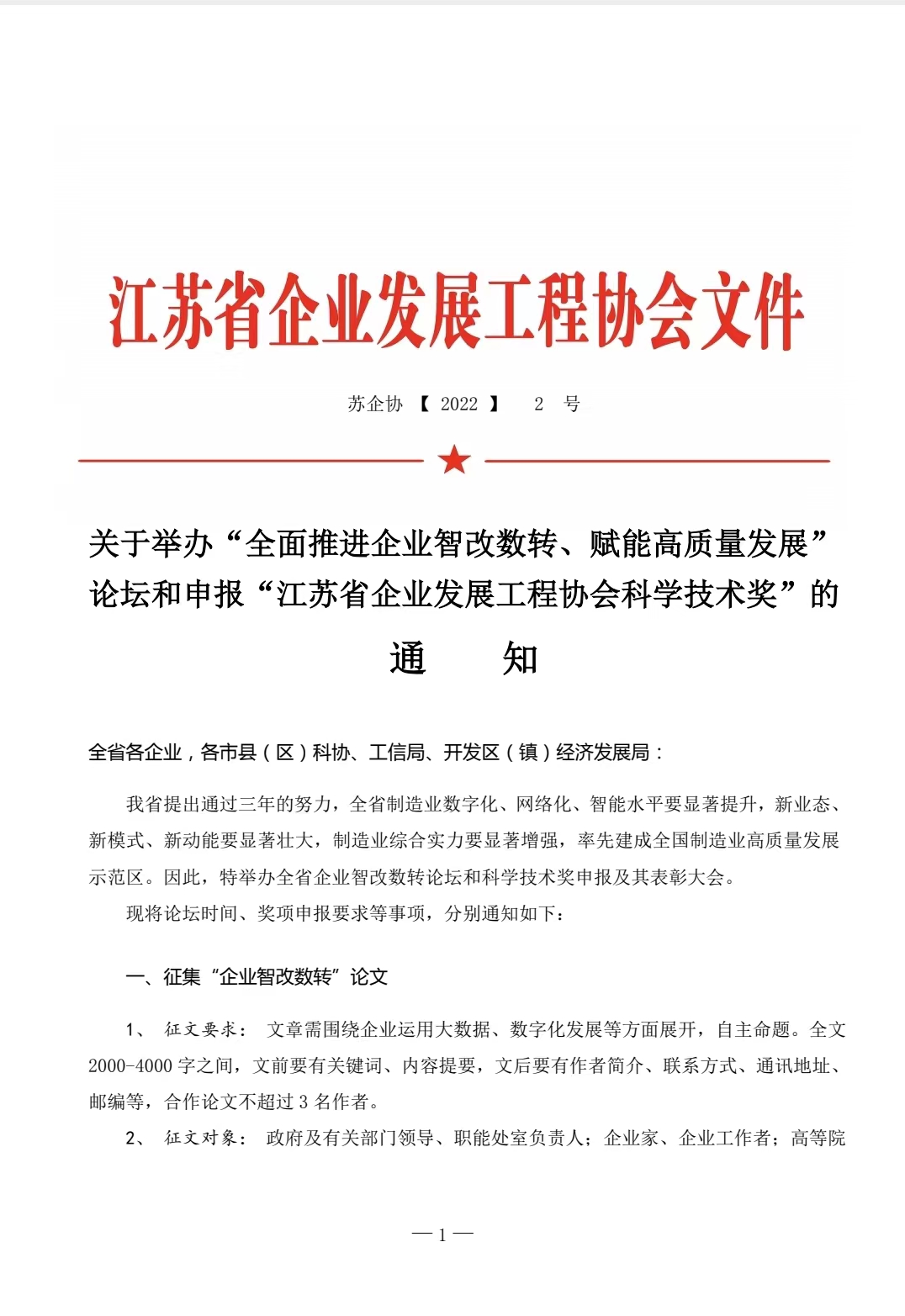 关于2022年举办“全面推进企业智改数转、赋能高