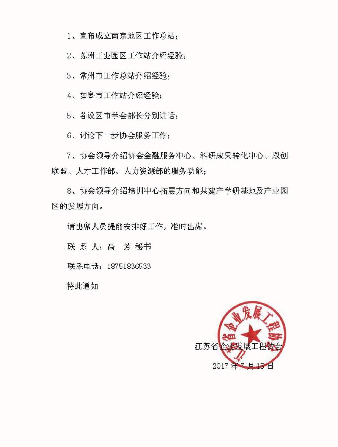 江苏省企业发展工程协会关于召开在全省建立区