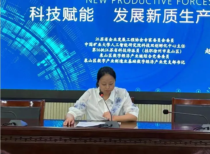 江苏省企业发展工程协会专家委员会委员、中国矿业大学人工智能研究院双创孵化中心主任、第16批江苏省科技特派员赵迪斐博士作了“发展新质生产力”主题报告。