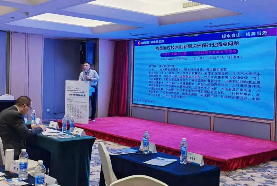 东莞市格美节能设备有限公司技术总监、博士孔健作了“磁电脱盐技术及其在复杂高盐废水零排放领域的应用”的专题报告。