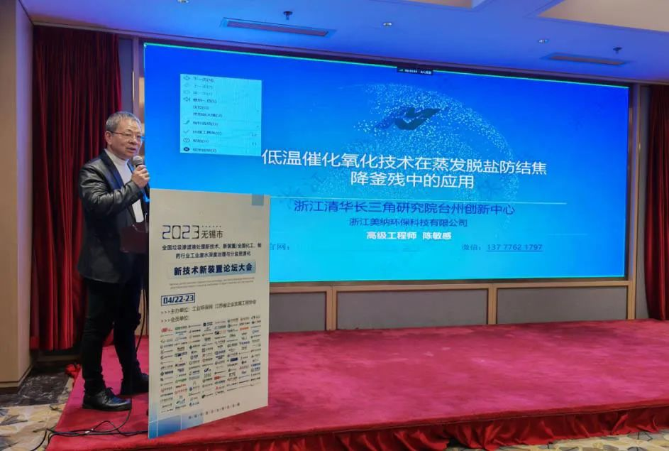 浙江清华长三角研究院台州创新中心高级工程师陈敏感作了“低温催化氧化技术在含酚废水脱酚及蒸发脱盐防结焦降釜残中的应用”专题报告。