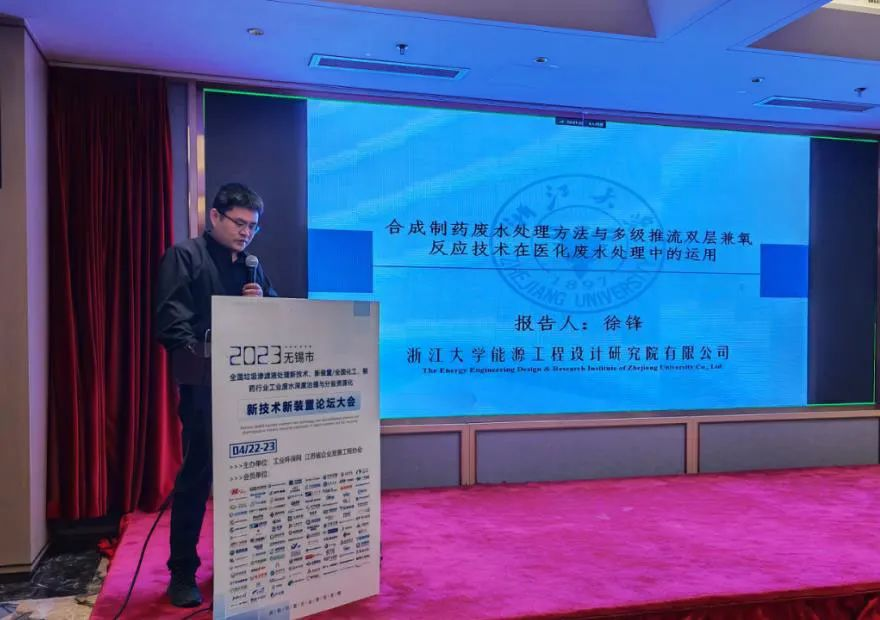 浙江大学能源工程设计研究院水设计所所长、高级工程师徐锋作了“合成制药废水处理方法与多级推流双层兼氧反应器在医化废水处理中的运用”专题报告。