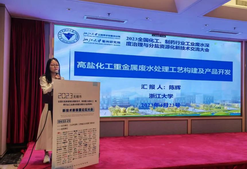浙江大学化学工程与生物工程学院研究员陈辉作了“高盐化工重金属废水处理新工艺”的专题报告。
