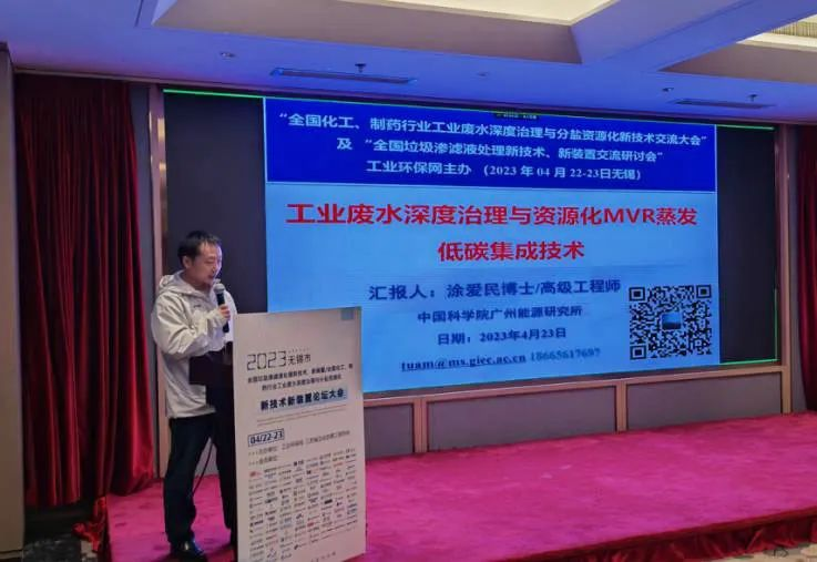 中国科学院广州能源研究所高级工程师涂爱明作了“工业废水深度治理与资源化MVR蒸发低碳集成技术”的专题报告。