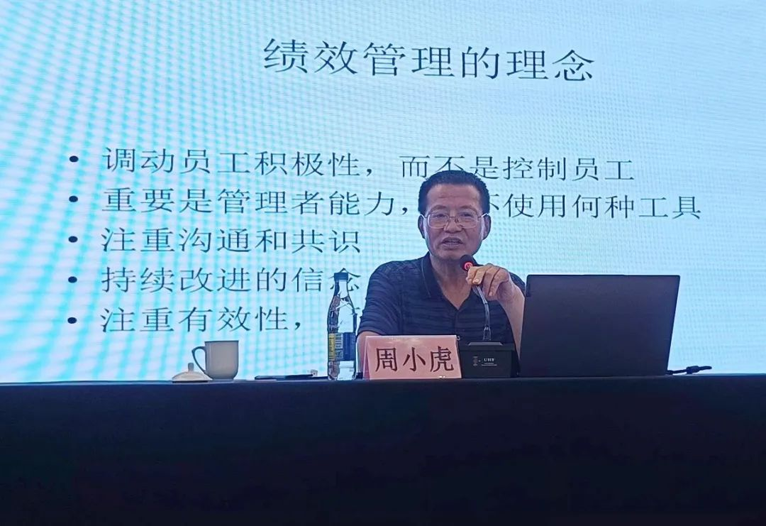 周小虎的报告分为四个部分。一是高绩效组织的理论探索;二是绩效管理的基本理念;三是绩效管理的新理论;四是绩效管理的新实践。周小虎从《追求卓越》的组织特征,到保存核心,刺激进步,兼容并蓄、互补互动;从绩效管理系统,到目标设置;从人才驱动战略,到动态性、整体性问题、匹配性问题;从数字时代的战略,到执行战略取得的成果;从数据驱动,到生态品牌战略;从六大构成要素,到共赢增值的创新等方面做了深刻的阐述。报告前瞻性高、适用性强,受到了与会者热烈的欢迎和一致好评。